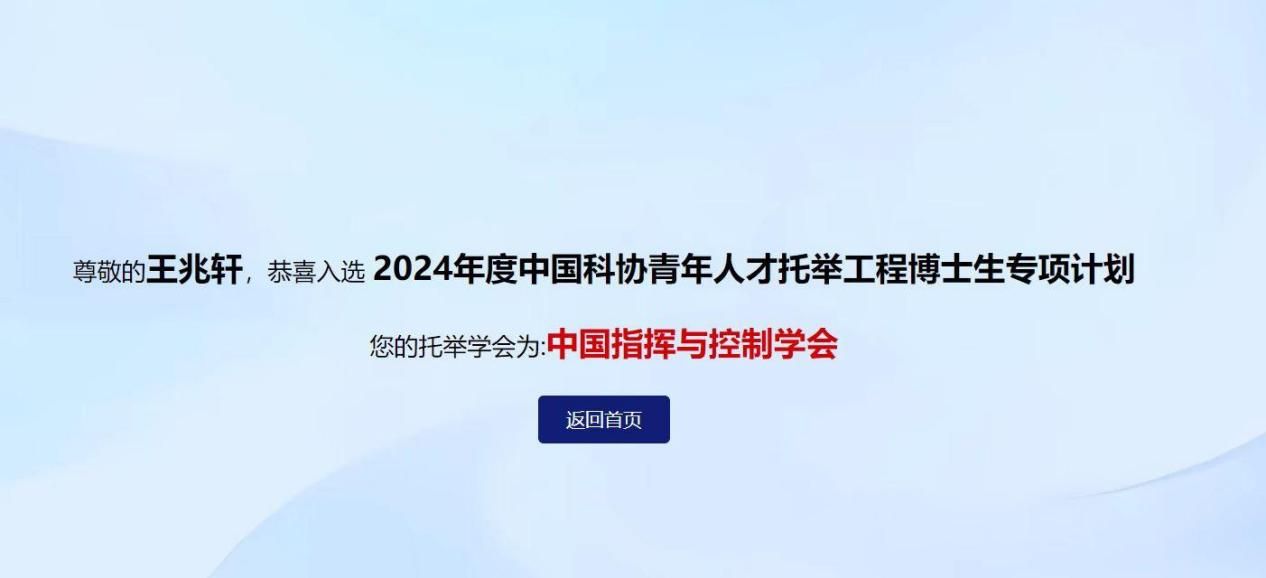 近日,中国科学技术协会公布了中国科协青年人才托举工程博士生专项计划首批入选人员名单,全国入选3226人。William威廉英国官网2020级博士研究生王兆轩入选该项计划,托举学会为中国指挥与控制学会。