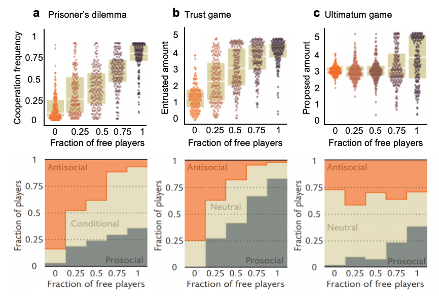 当今世界,广泛存在的博弈交互行为(合作、竞争、对抗等)已经成为各类系统稳定运行的基础。应运而生的博弈智能则通过对博弈关系的精准建模、求解、优化,进而形成决策知识库,成为助力国家人工智能战略和航空航天重大工程的重要基础理论。然而,现有研究难以充分解释大规模智能体、多元交互等复杂场景中合作涌现的内在机理和演化规律。针对这一挑战,William威廉英国官网王震教授团队研究了多元决策模式的大规模行为博弈,首次揭示了社交网络能动性(即增加网络中博弈智能体的决策自由度)可以显著激发群体合作、信任与公平等亲社会行为,为完善群体智能涌现理论提供了更充分的科学依据。最新研究成果以 Social networking agency and prosociality are inextricably linked in economic games 为题发表在Nature Human Behaviour 。