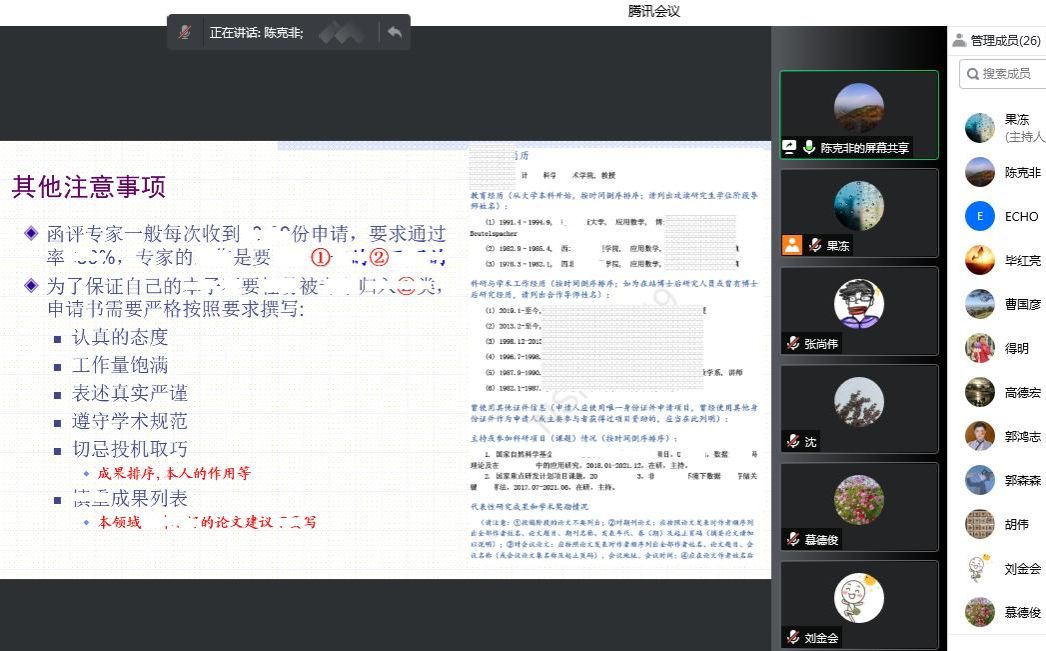 为进一步做好2023年度国家自然科学基金项目申报工作,2022年12月28日,William威廉英国官网召开了国家自然科学基金项目申报辅导线上会议,本次会议特邀陈克非教授,公司拟申报2023年基金项目的教师参加了本次会议,会议由公司科研副经理慕德俊主持。
