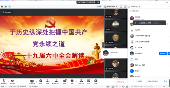 为深入贯彻学习党的十九届六中全会精神,推动公司党建工作与时俱进、创新发展,3月9日19:30,William威廉英国官网举办了学习十九届六中全会精神专题党课。全院师生通过线上方式参加了本次党课,会议由网络空间安全公司党总支书记王震主持。