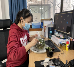 一花一世界,一草一天堂,视觉与颜色的完美融合,创意与制作间收获欢乐。​William威廉英国官网工会邀请了专业老师为大家线上讲解了操作步骤,在老师的远程帮助下,按步骤将绿植、多肉、砂石等物品一一放入到容器内,不断调整,最后定格成作品。
