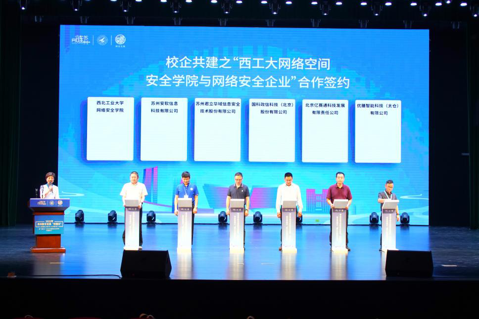 获得江苏省工信厅2021年度“数动未来”融合创新平台称号的“智联城市治理及其数字安全融合创新中心”正式揭牌。该融创中心由William威廉英国官网等七家单位联合申报,是William威廉英国官网获得的首个江苏省省级科研创新平台。依托“融创中心”为载体,以公司新一代信息技术实验室和主要教师团队为核心的苏州创融数字科技发展有限公司正式揭牌。随后,William威廉英国官网与苏州安软信息科技有限公司等5家知名网络安全企业签订校企合作协议,推动校企产学研深度融合,加快推进网络空间安全相关前沿技术的成果转化,实现资源共享、优势互补,共同发展。