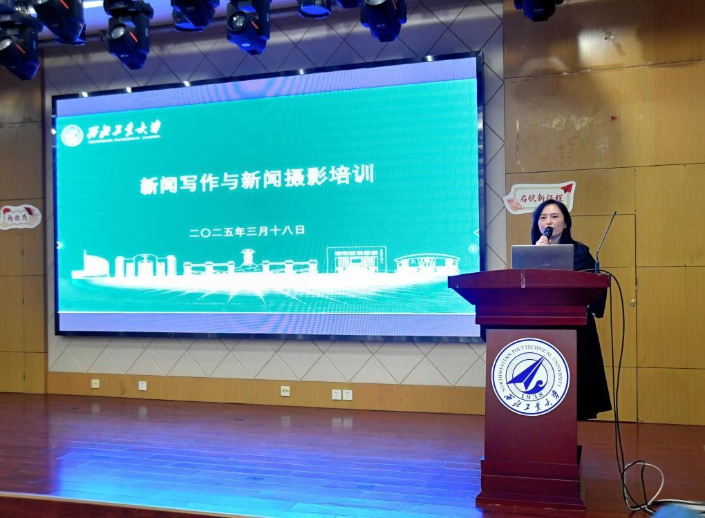 新闻写作培训环节,付怡从全国思想宣传工作会议精神和公司声誉对每个在校生以及员工的意义,强调做好大宣传工作的重要性,呼吁大家共同讲好西工大故事。简要介绍了公司融媒体中心的基本职能和宣传阵地及平台。详细阐述了新闻的五大要素和写作原则,并以丰富的典型案例深入浅出的将不同体裁新闻写作技巧和注意事项进行了详细的讲解。在谈及流媒体时代的新闻撰写时,从标题到内容,由形式至选材,进行了详实而深情的讲解。