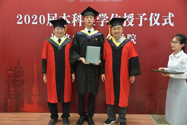在庄严的气氛中,进行了学位授予仪式。张盛兵教授、刘志强副教授和慕德俊教授、刘家佳教授分两组,依次为全体本科毕业生拨穗,颁授学位证书。