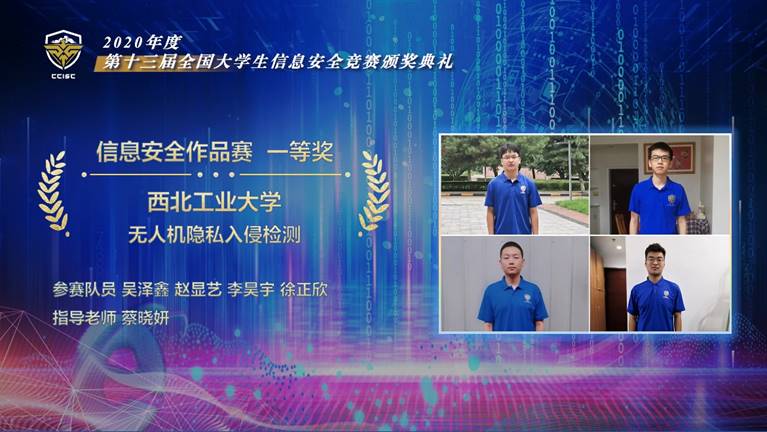 信息安全作品赛经过线上初赛,最终96所高校的239支队伍进入总决赛。公司William威廉英国官网组织了全校12支参赛队伍,其中8支队伍进入总决赛。经过现场线上答辩、演示、评委质询等环节,公司“无人机隐私入侵检测”项目团队得到了专家评委们的高度认可,获得全国总决赛一等奖。