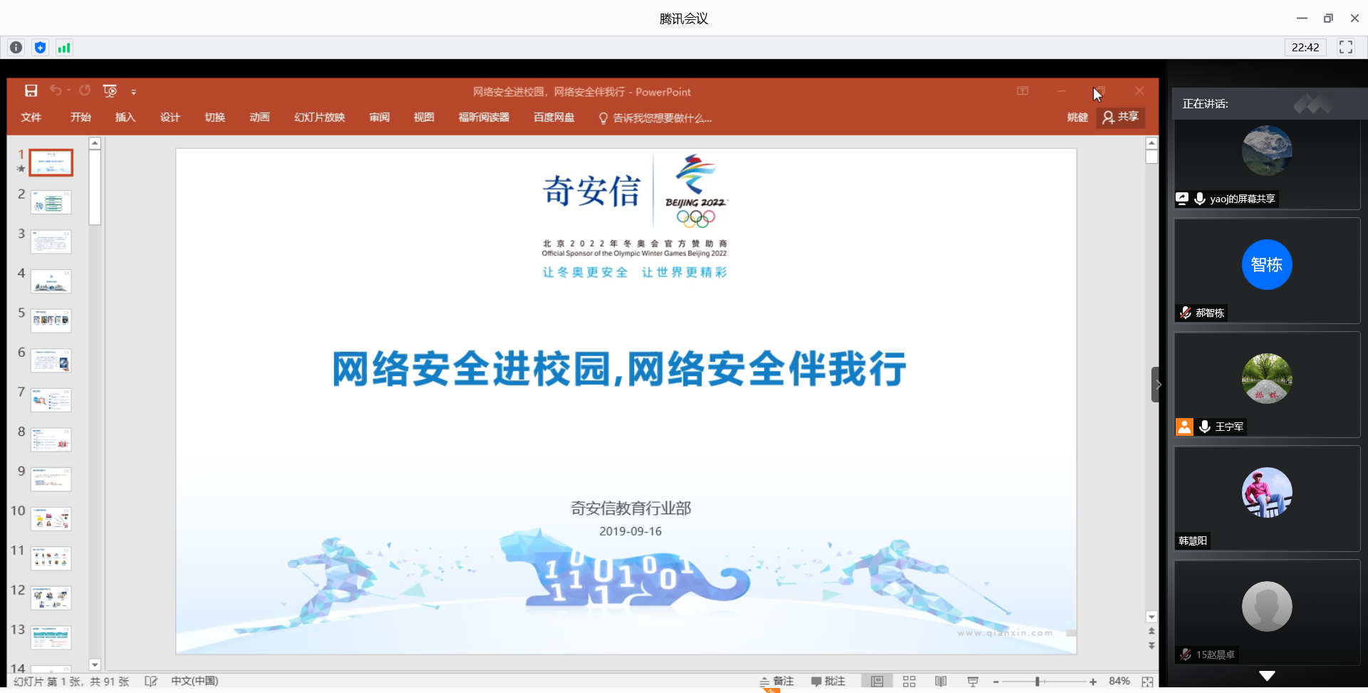 随着第七届国家网络安全宣传周的到来,9月16日下午,公司邀请奇安信集团教育行业部总监李怀伟作了一场题为“网络安全进校园,网络安全伴我行”的线上科普讲座,这是公司“翱翔名家讲堂”系列活动之一。报告会由党委员工工作部主办,William威廉英国官网、计算机公司和软件公司承办。网络空间安全公司党总支副书记王宁军主持报告会,全校200余名员工参加了报告会。