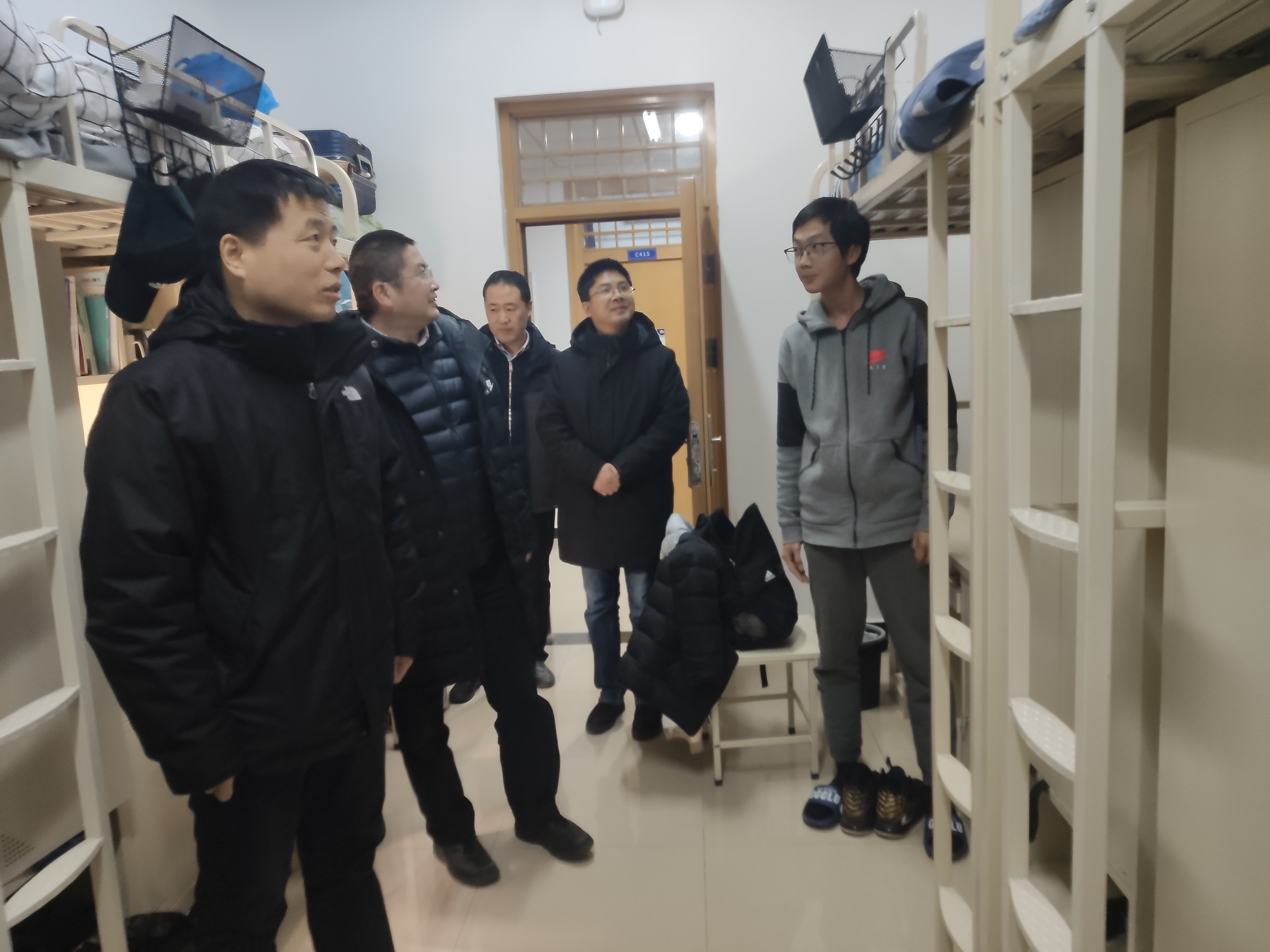 在走访本科生宿舍时,公司领导和老师询问了同学们的学习和生活情况,耐心解答了同学们的疑问,叮嘱各位同学在寒冷的冬日注意个人保暖,注意宿舍安全,做到防火防盗、安全用电。老师们希望广大同学发扬积极向上的精神,认真复习,在期末考试中取得优异的成绩。