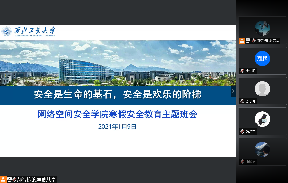 1月9日和1月11日,公司在线上分别组织召开本科生和研究生寒假安全教育大会。会上,公司辅导员王昌昌带领同学们认真学习了公司《关于进一步做好2021年寒假员工离校返校有关工作的通知》,就寒假离校返校有关规定和要求进行了详细讲解。同时,他从疫情防控、个人生命财产安全、心理健康等方面对员工进行了安全教育。“生命重于泰山,安全高于一切”,王昌昌代表公司预祝各年级同学度过一个平安快乐的假期。