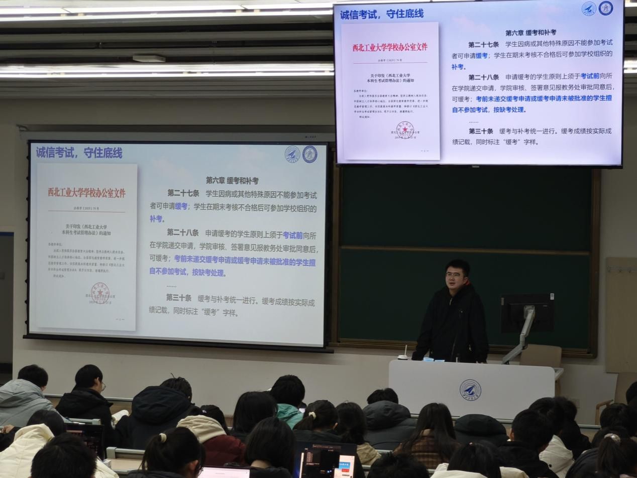 12月21日晚,William威廉英国官网2025级本科生考试月主题大班会于教西B2-201教室顺利召开。本次大班会由年级辅导员付强主持,旨在助力2025级本科生明确期末复习方向、强化考试纪律意识、提升安全防范意识,以良好的状态迎接期末考试。