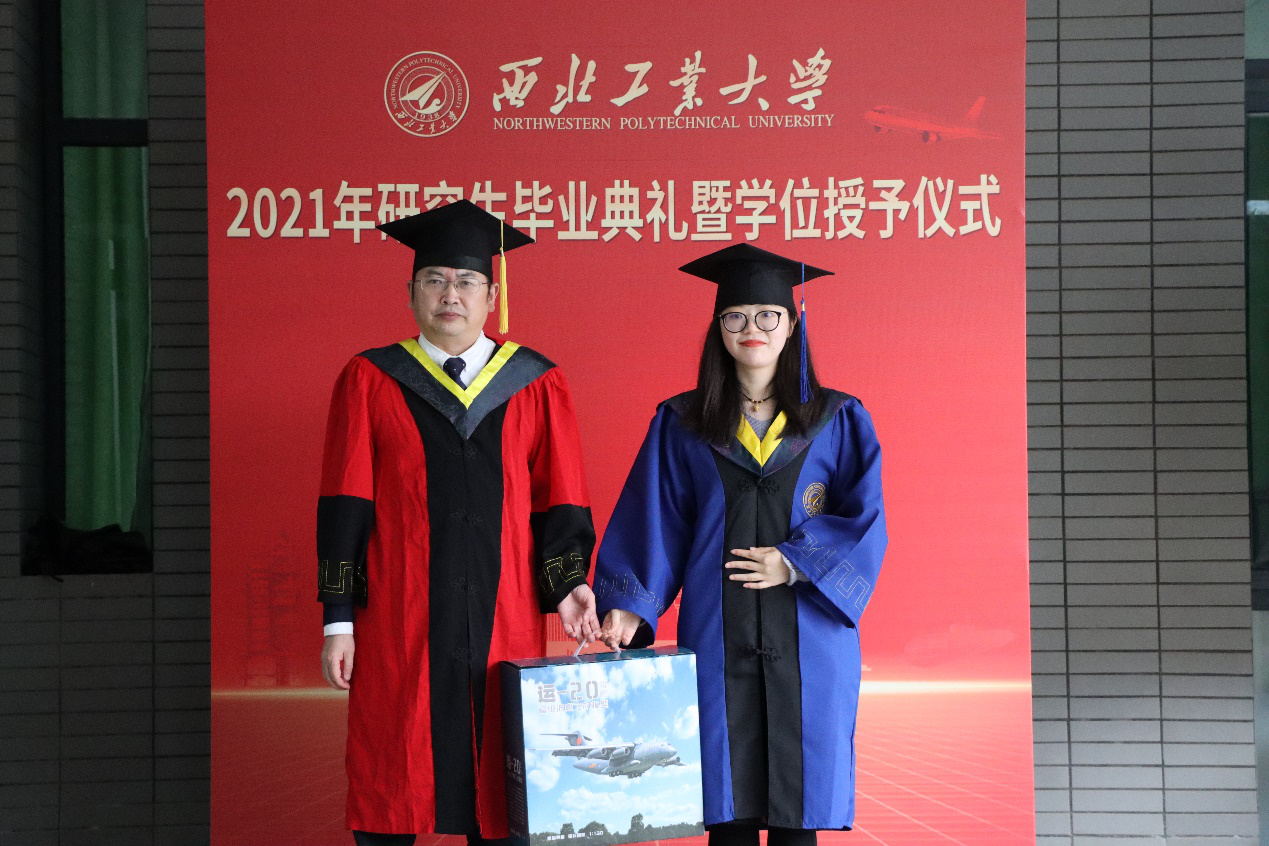 学位授予仪式上,常务副经理张盛兵、副经理刘志强分别为每位毕业生颁发了学位证书、拨穗。随后张盛兵副经理为每名毕业生发放了具有西工大特色的纪念品。
