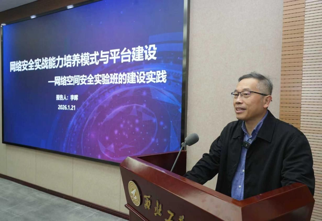 报告会上,李晖教授以“网络安全实战能力培养模式与平台建设——网络空间安全实验班的建设实践”为主题,系统分享了西安电子科技大学在网络安全人才培养方面的理念、模式与实践经验。他指出,作为国家一流网络安全公司建设示范项目高校,西工大与西电均高度重视员工实战能力的塑造,并将其视为网络安全人才培养的核心环节。