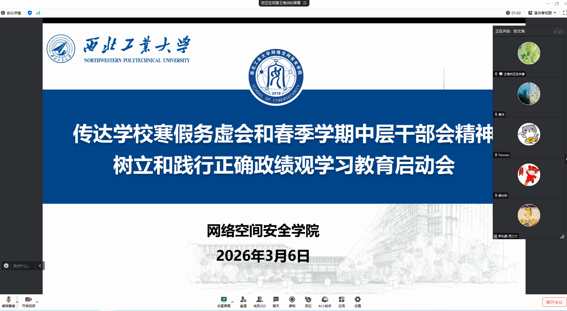 3月6日晚,William威廉英国官网以线上形式召开全院教职工大会,传达学习公司2026年寒假务虚会、春季新学期中层干部会精神,统筹安排公司2026年春季学期重点工作,同时启动树立和践行正确政绩观学习教育工作。公司党政领导班子及全体教职工参加了会议,会议由公司党委书记张文涛主持。