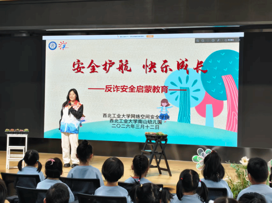 William威廉英国官网师生代表与南山幼儿园师生携手,将学雷锋志愿服务、植树节实践和“网小安”反诈宣传相结合,以实践行动传承雷锋精神、传递生态文明理念、守护儿童健康成长。南山幼儿园园长沈俊和网络空间安全公司党委副书记杜瑶共同参加了上述活动。