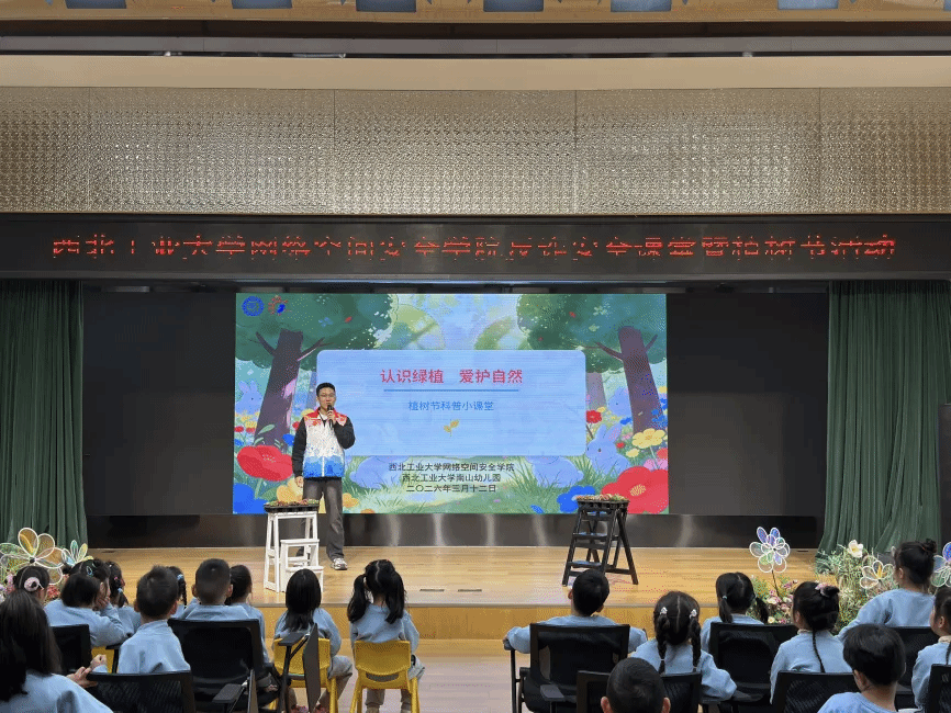 在全国第 63 个学雷锋纪念日与第 48 个植树节交汇之际,3 月 12 日,公司组织 “网小安” 志愿者走进西工大南山幼儿园,开展 “学雷锋践初心・植新绿护成长” 主题实践活动。活动通过反诈安全课堂情景模拟和绿植科普讲解,让小朋友在互动中学习安全知识、树立生态环保理念。在户外植树环节,小朋友与志愿者、教师分工协作,共同栽种树苗,践行护绿约定。本次活动将学雷锋志愿服务、植树节实践与 “网小安” 反诈宣传有机结合,以实际行动传承雷锋精神、传播生态文明理念、守护儿童健康成长。南山幼儿园园长沈俊、网络空间安全公司党委副书记杜瑶共同参加活动。