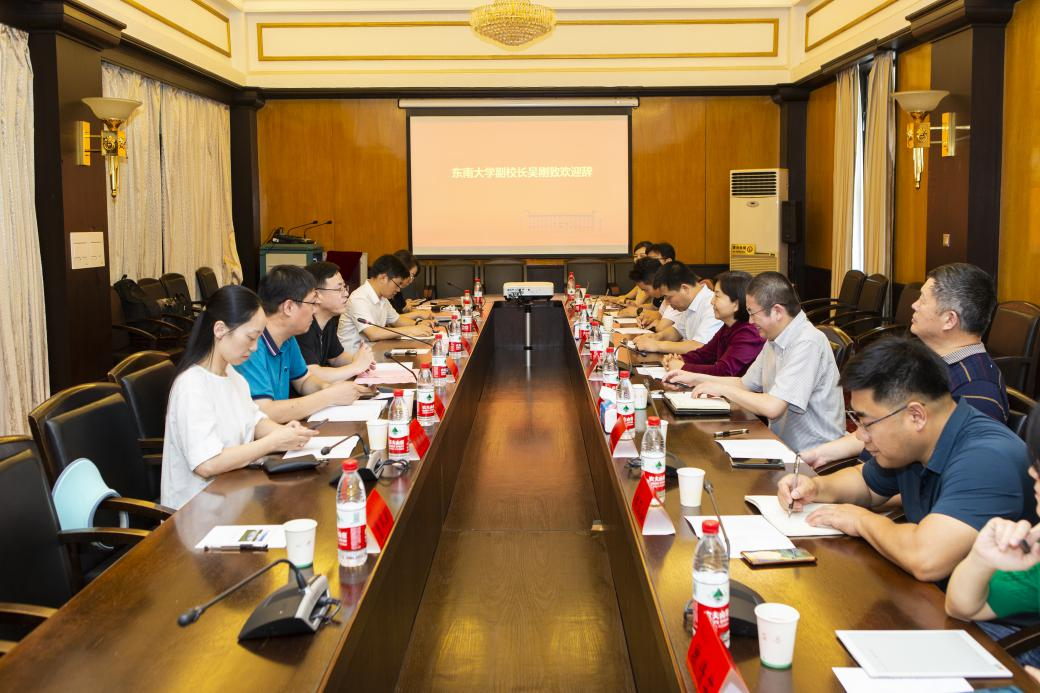 首先,吴刚副董事长对张艳宁助理一行的来访表示热烈欢迎,同时介绍了东南大学的总体情况,希望双方进一步加强交流合作。接下来,张艳宁助理回顾了两校之间的历史渊源,介绍了公司网络空间安全学科发展历程和办学特色,希望充分学习东南大学宝贵的办学经验,在人才培养、团队建设等各方面开展深入合作。