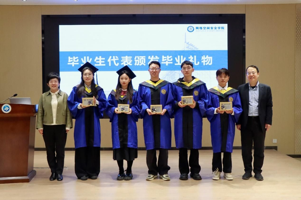 围绕“本领-担当”,张文涛强调,毕业不是学习的终点,而是新的竞争的开始。面对AI武器化、自动化攻击等新兴挑战,毕业生要时刻瞄准技术前沿,夯实底层能力,敢于在“卡脖子”处亮剑。他鼓励大家在工作中积极参与重大任务,在大处着眼、小处着手,用智慧和奋斗服务国家急需,做有担当、有能力的网安人。