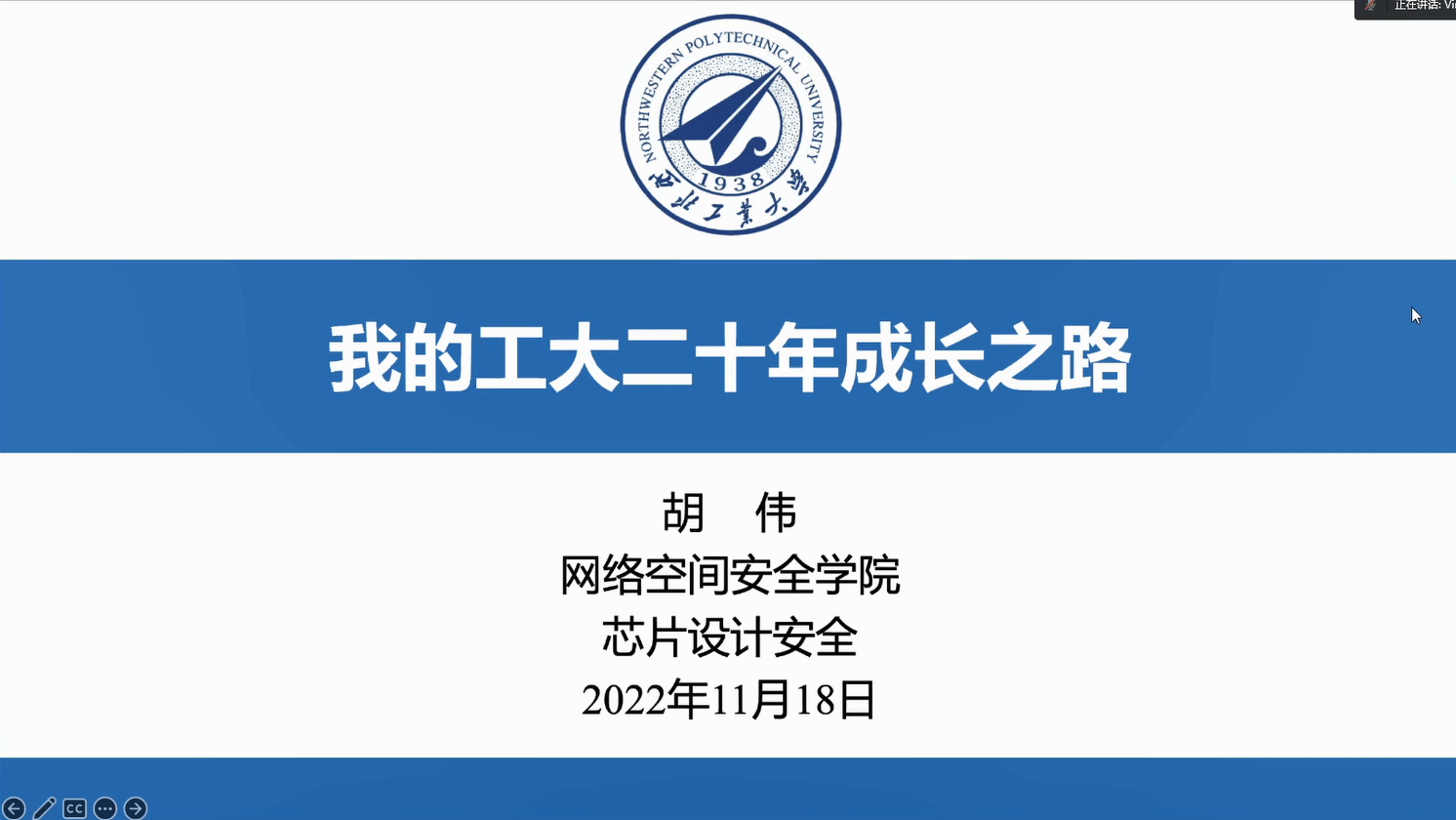 公司青年教师代表胡伟以《我的工大二十年之路》为题分享了个人在西工大二十年以来的求学、教学和科研工作经历,胡伟今年入选了国家级青年人才,他以自身的发展经历鼓励广大青年学者要脚踏实地,勇于创新,结合国家战略需求进行科研攻关,切实解决关键技术难题。