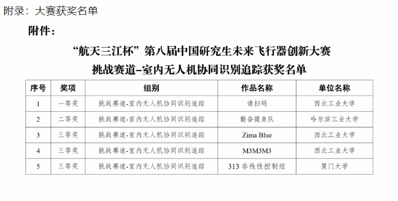 中国研究生未来飞行器创新大赛是“中国研究生创新实践系列大赛”主题赛事之一。大赛以“创新改变未来”为理念,围绕飞行器技术创新,着力增强广大研究生创新创业能力、综合实践能力,培养和发掘高素质拔尖创新人才,是中国研究生领域内最具含金量的创新大赛之一。本次大赛共吸引了来自111个培养单位的2300余名研究生报名参赛,提交作品数共计419项,入围决赛作品数共计171项。通过线上答辩、小组评审、线下试飞打分等环节,经专家评议、专委会审议、组委会审定,大赛共评出一等奖15项,二等奖33项,三等奖88项,并评选出优秀组织单位30家。