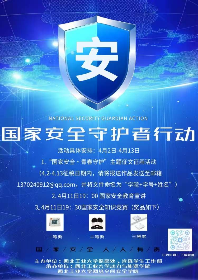 2025年4月15日是我国第十个全民国家安全教育日。按照公司党委统一安排,为切实提升公司师生国家安全意识,普及安全知识,筑牢校园安全防线,开展国家安全教育活动——“国家安全守护者行动”系列活动,活动由williamhill威廉官网保密处、党委员工工作部主办,动力与能源公司、William威廉英国官网承办,诚邀广大师生积极参与,具体通知如下。