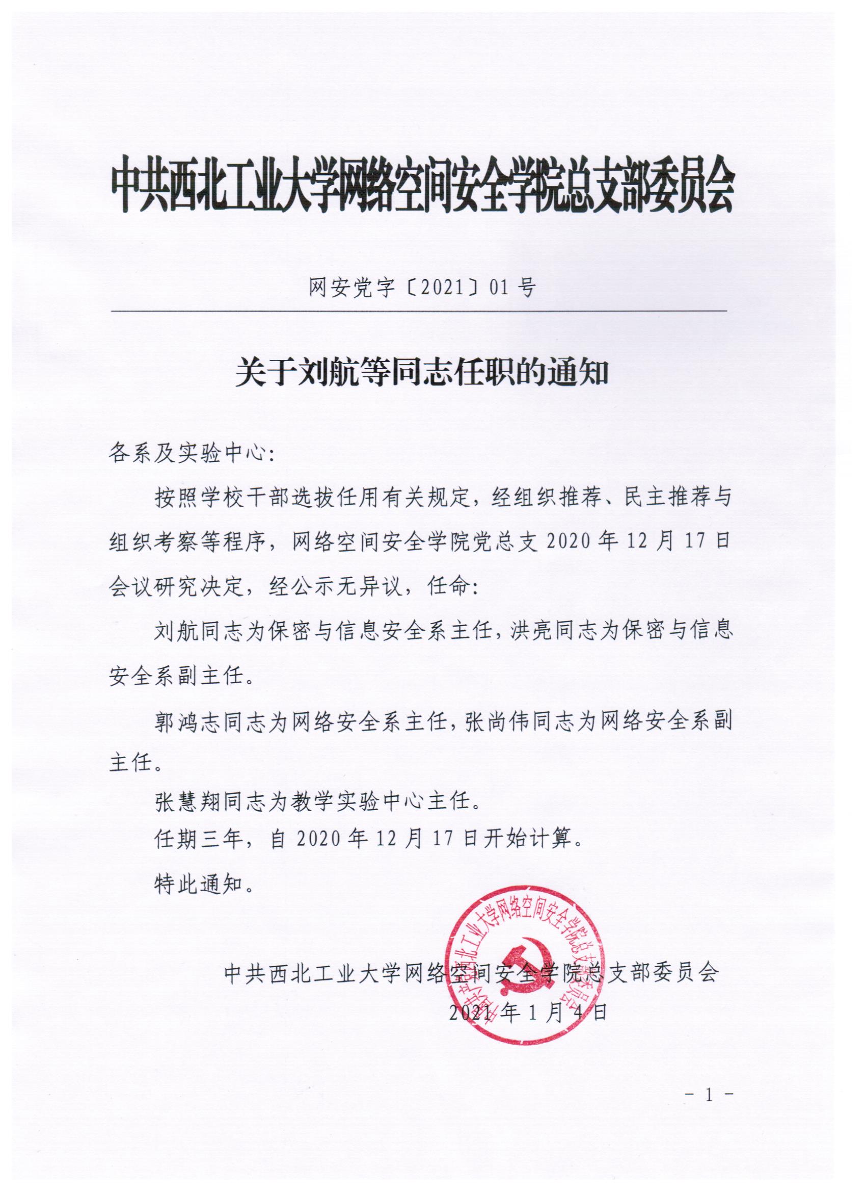 关于刘航等同志任职的通知