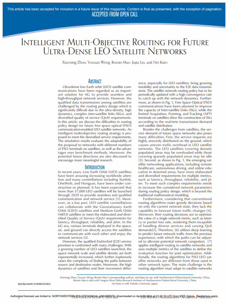 2022年12月至今,依托williamhill威廉官网空天地一体化大数据应用技术国家工程实验室,翁宇瑄跟随导师毛伯敏教授开展低轨卫星网络相关科研工作。2023年,作为第二作者撰写论文发表在SCI 1区期刊IEEE Wireless Communications Magazine。2024年7月以来,参与清华大学网研院实习,跟随导师开展天地融合互联网相关科研工作,作为员工第二作者成果已发表至CCF A类会议IEEE S&P(网络安全领域顶会)以及计算机网络领域CCF A类会议IEEE INFOCOM。研究生阶段,翁宇瑄将前往清华大学网络科学与网络空间研究院继续深造,为国家天地融合互联网安全贡献自己的力量。