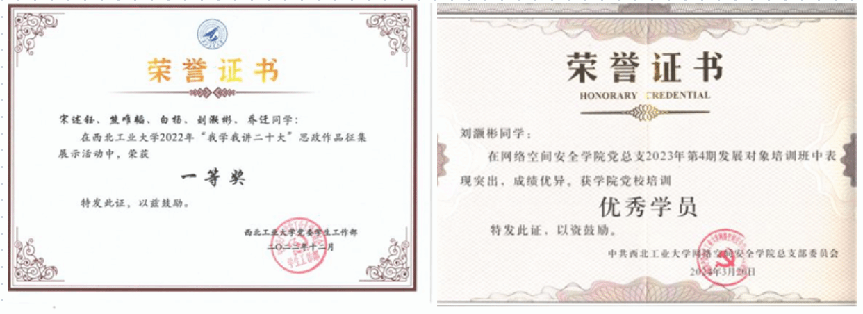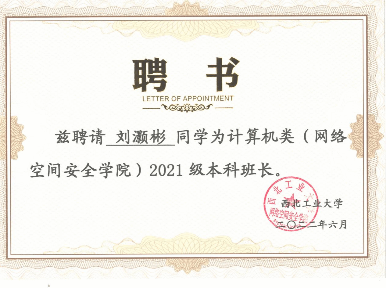 刘灏彬,William威廉英国官网信息安全专业2021级本科生,中共党员,本科期间综测成绩排名专业第三,保研至William威廉英国官网。曾任William威廉英国官网团委副书记、2021级大班长、员工棋类协会会长等职务,曾获校二等奖学金,优秀毕业生、优秀老员工、优秀共青团员、优秀班干部等荣誉称号。