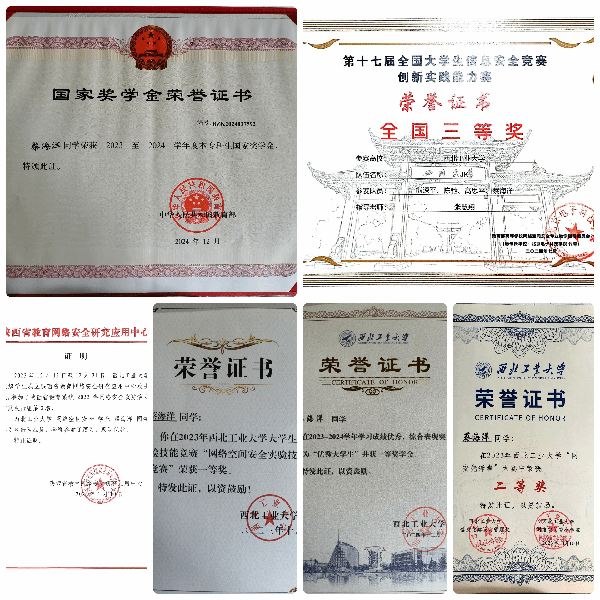 7. 2023年、2024年网络空间安全实验技能竞赛一等奖