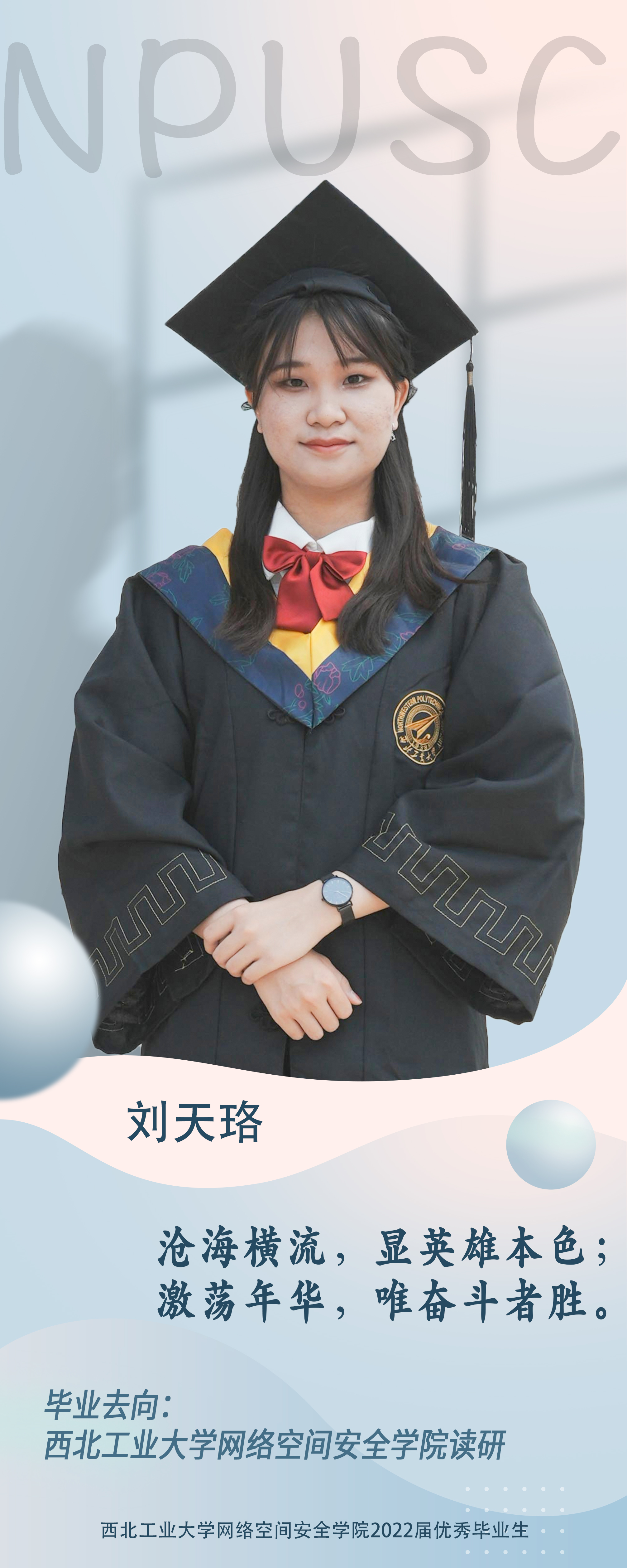 公司本科生刘天珞。本科期间参与国家级大创一项并获得优秀结题,主持省级大创一项,申请软件著作权三项,并获得“太仓杯”网络空间安全创新创业大赛校级一等奖等。曾多次获校级优秀员工、院级优秀员工。曾担任曾担任信息安全协会团支书、信息安全基础能力训练课程助教,也曾担任员工大使回母校进行宣讲,在网络安全志愿日活动中担任志愿者。