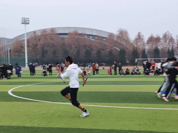 图为刘展参加一二·九趣味跑比赛