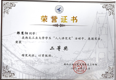 在认真上党课、系统学习理论知识的同时,韩慧阳还积极参与思政教育活动与社会实践。2021年暑期,韩慧阳作为队长带队前往上海实地参观进行党史学习,同时荣获“社会实践先进个人”称号。韩慧阳曾参与“人人讲党史”活动、“工大青年说”等演讲比赛并取得了不错的成绩,此外她还积极报名参加党支部组织的系列活动。在 2021、2022年五四表彰中韩慧阳连续两年被评为“优秀共青团员”。