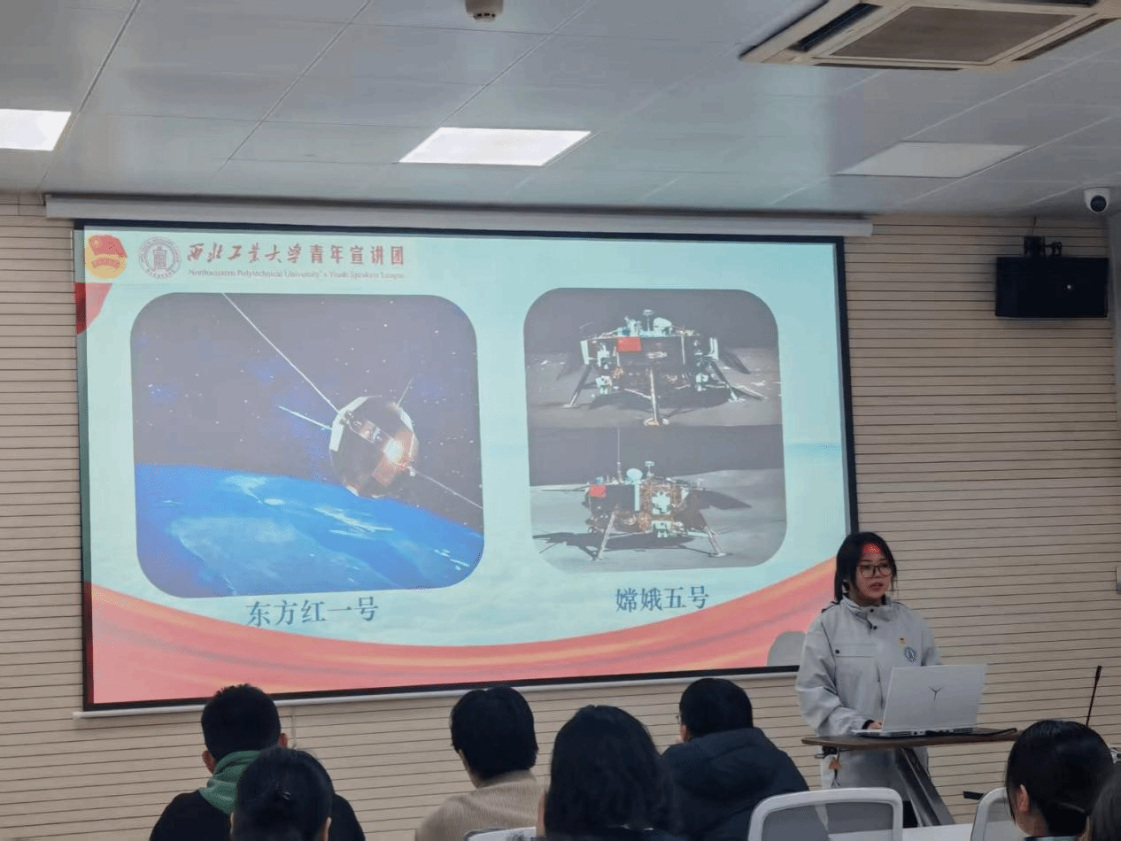 会议伊始,来自青年宣讲团的戴衍华同学为大家带来了一场生动的主题宣讲。戴衍华以王伟的故事拉开序幕,讲述了王伟烈士在捍卫祖国领空时的英勇无畏与坚定信念,接着介绍了我国如今蓬勃发展的航天事业,从东方红一号到嫦娥五号,展现了我国在航天科技方面的雄厚实力与不懈追求。随后,戴衍华深入解读了公司第十四次党代会的主题与精神内涵,强调全面贯彻新时代党的教育方针,锚定“天下工大、世界三航”远景奋斗目标,是我们不懈努力的方向。最后,戴衍华以“极目楚天复兴梦,共襄星汉吾辈行”的激昂话语结尾,激励同学们在新时代的征程中,勇担使命,为实现中华民族伟大复兴的中国梦贡献自己的力量。