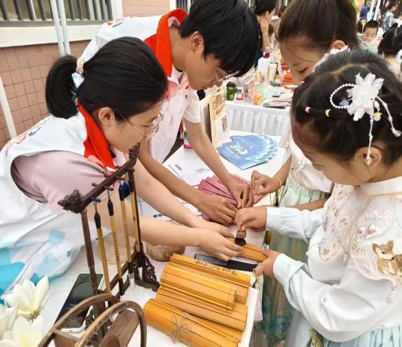 5月30日下午,志服部成员走进西安大学南路小学,参与举办了一场“传统文化进校园”活动。活动通过书画漆扇作品展示和封泥制作等形式,让孩子们在亲身体验中感受传统文化魅力,激发他们对历史文化的探索热情。