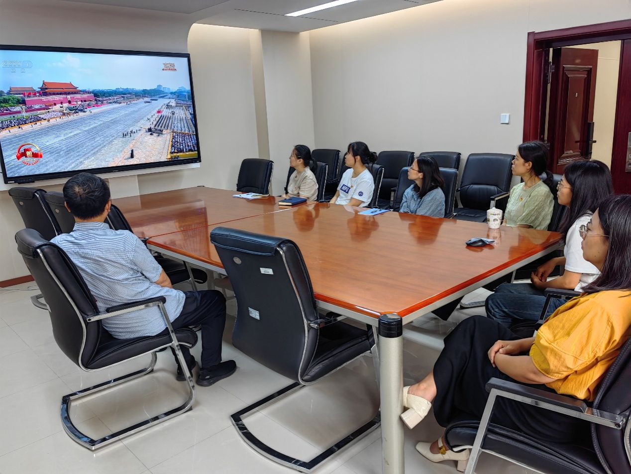 教职工在友谊校区爱生楼会议室集中观看