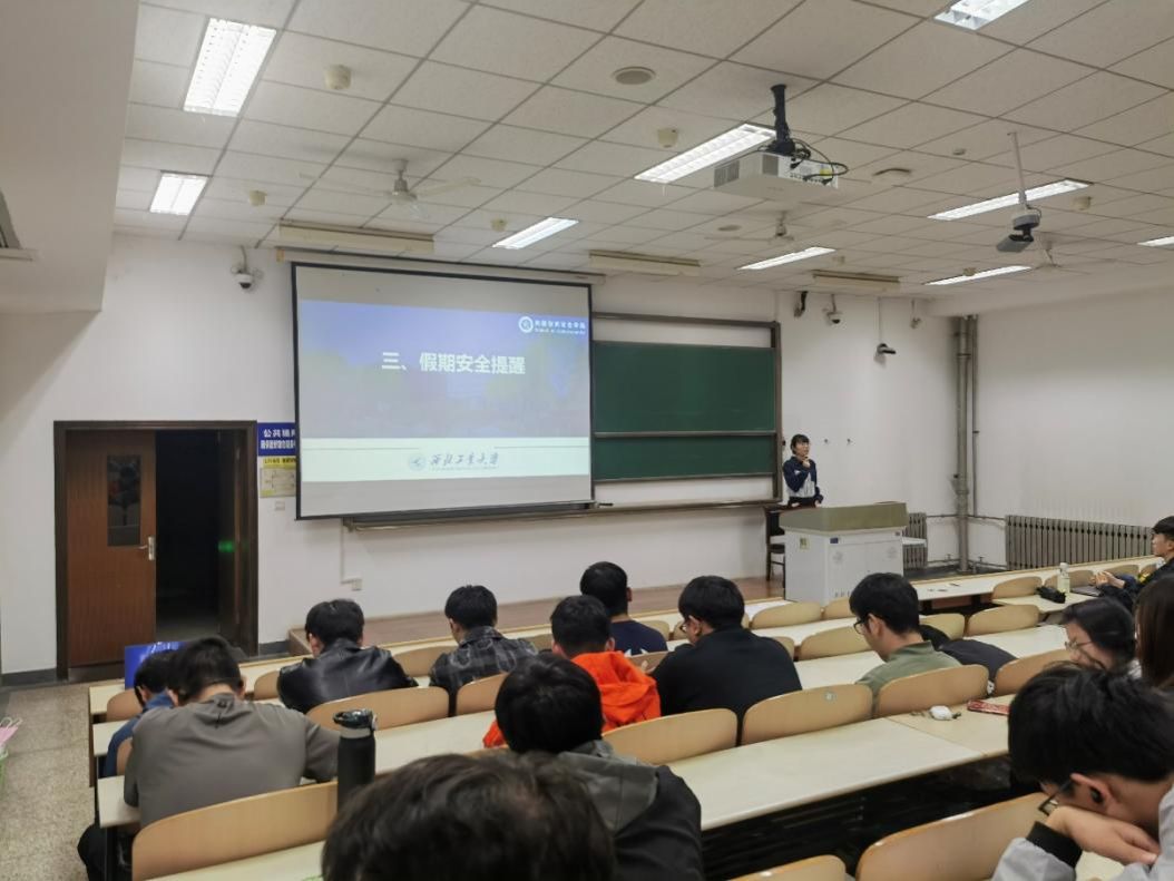 随后,朱丹围绕网络安全与言论规范开展了警示教育,通过案例提醒同学们自觉遵守法律法规和校纪校规,杜绝破坏安全稳定工作等违法行为,并注意国庆假期期间的人身与财产安全。