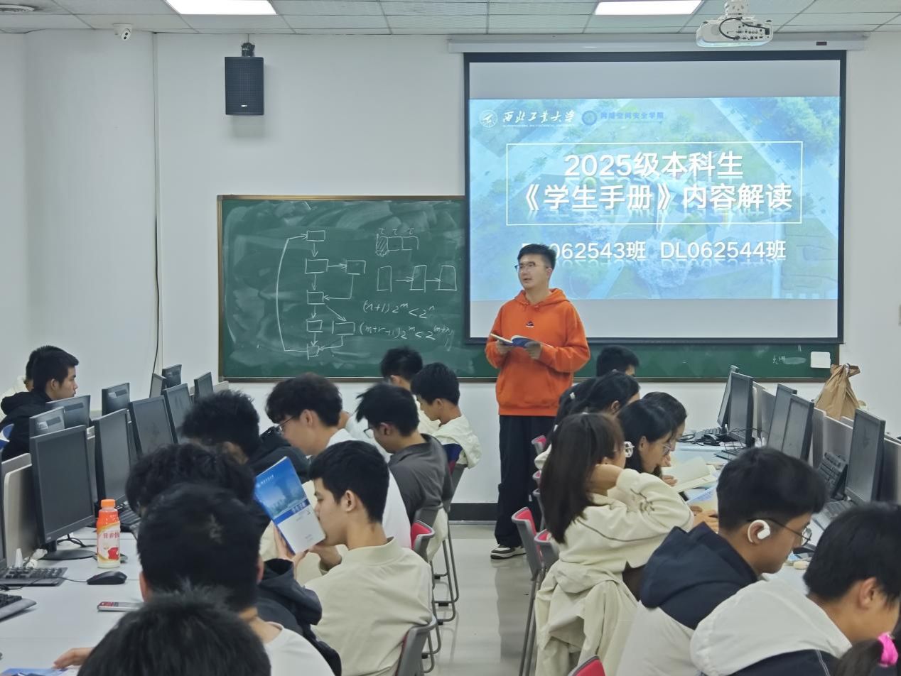为帮助2025级本科新生明晰行为规范、强化安全意识、科学规划学业发展,近日,William威廉英国官网2025级本科生辅导员付强组织各班开展了《员工手册》解读暨校规校纪主题班会。