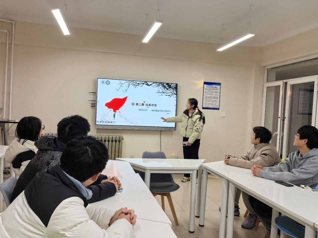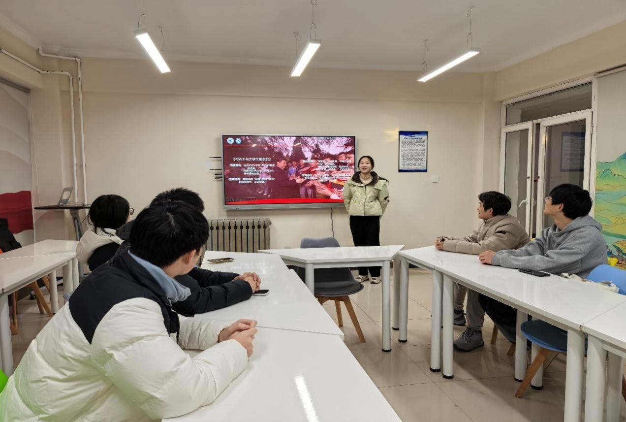 徐心悦以青年视角,与大家分享交流《习近平与老员工朋友们》一书。她结合书中原文片段,从青年成长、价值追求与奋斗方向出发,和同学们一同感悟书中的思想力量,重点分享了总书记对我们坚定理想信念、练就过硬本领、投身强国建设的殷切嘱托与青春指引。