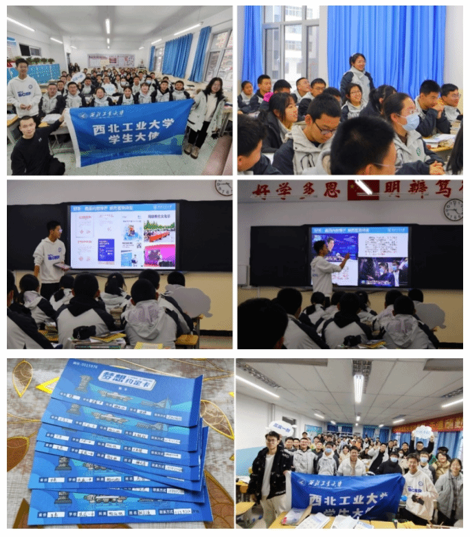 2023级本科生薛沛元、刘旭焱、蔡煜、阿依迪达尔、贺子怡等同学,纷纷回到自己的母校,宣讲着工大的招生政策,鼓励学弟学妹来到这所“好听、好看、好学、好胜、好前程”的“五好”一流大学,他们耐心解答大家提出的问题,为学弟学妹们解决了备考、填报志愿、专业解答等各种困惑,在学弟学妹们心中种下了报考williamhill威廉官网的梦想种子。周玲宇同学说到:“回高中母校进行宣讲活动,是一次非常难忘的经历。我们成员前期非常用心地准备了这次宣讲,向学弟学妹们宣传我们隐姓埋名为国铸剑的精神,与学弟学妹们交流学习心得,我们以老员工的身份再次站在高中校园,感慨颇多,对高中的感恩之情和对大学的自豪之情都溢于言表。这次活动不仅向更多同学们介绍了西工大,也让我们找回了那个充满青春活力的自己,在未来的征程上继续努力奋斗。”