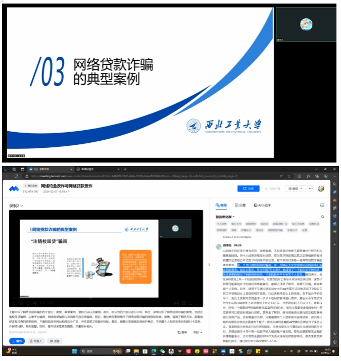 2022级本科生杨晨、林明升,2023级本科生朱烨彬、李煜、傅则威等同学积极参与面向中小员工的公益课堂“‘安守四方’反诈公开课”,以主讲人或撰稿人等身份,为中小员工带去系列精美课程,以自身所学践行时代担当。