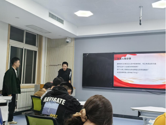 新中国成立以来,我国涌现出众多英雄人物和先进模范,他们是当之无愧的民族脊梁。围绕“我心中的英雄”,张新宇同学介绍了新中国建设时期典型的英雄榜样同时也表达了自己内心的感受与对先辈们的崇敬,之后同学们也积极分享了自己心目中的榜样并介绍了他们的英勇事迹。