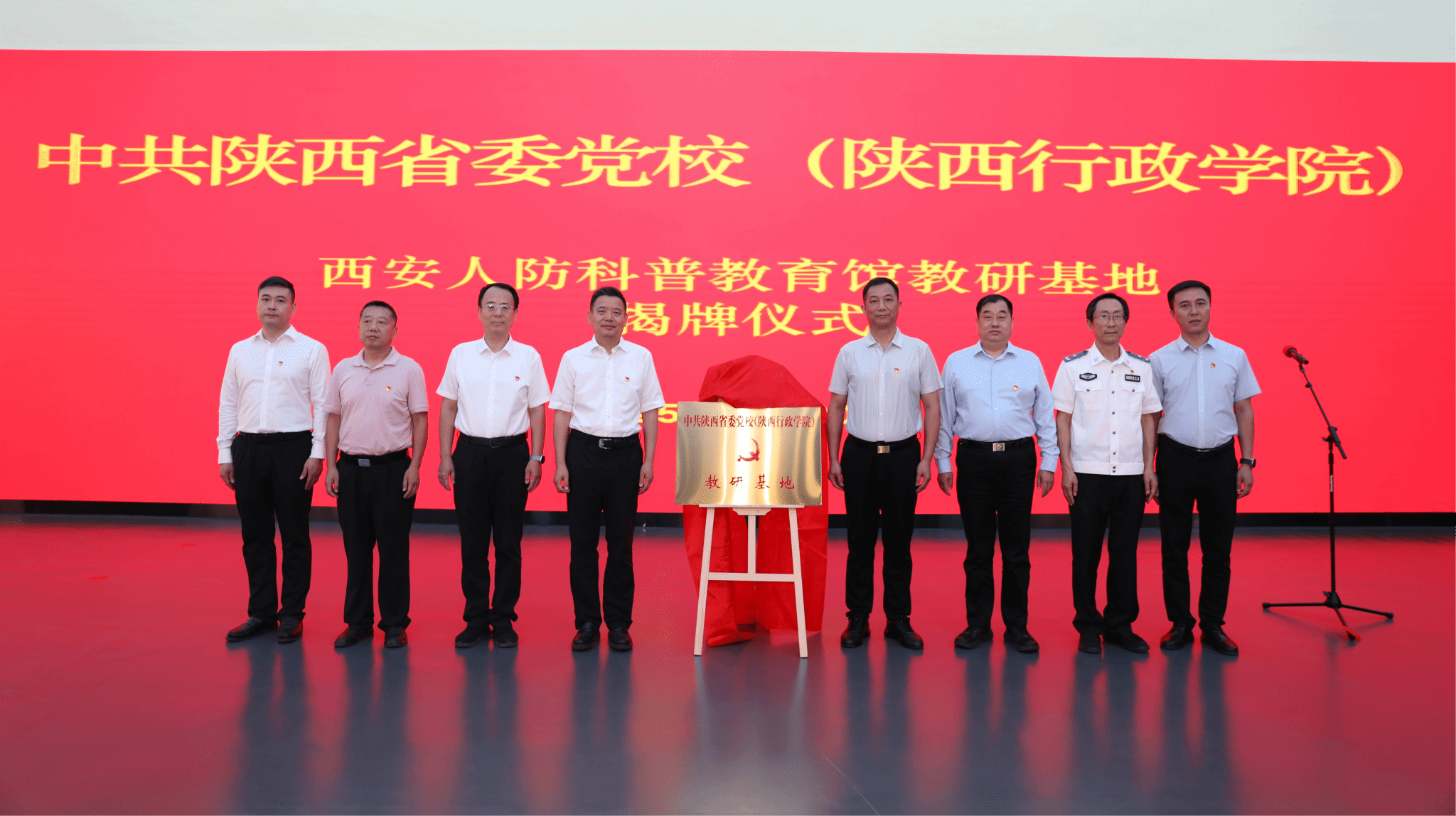 揭牌仪式上,西安市国防动员办公室党组书记、主任陈博,省委党校(陕西行政公司)副校(院)长薛小毛分别致辞。随后,薛小毛和陈博共同为西安人防科普教育馆教研基地揭牌。