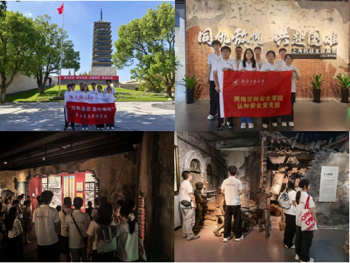 而在四行仓库遗址,西墙上430余个弹孔如凝固的泪痕,将“八百壮士”的史诗镌刻其上。队员们在“团副训话”雕塑前屏息凝神,谢晋元将军穿越80年的呐喊仿佛仍在耳畔,如惊雷炸响在灵魂深处。指尖轻抚弹孔,历史的温度从掌心蔓延至心尖,让这群新时代的网安学子更加读懂了守护国家“第五疆域”的使命担当。