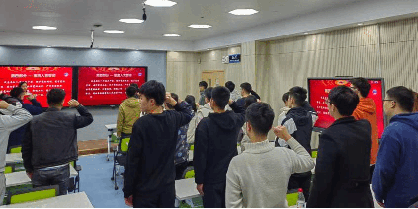 主题党日第一个环节是通过问答形式集中学习党的二十大精神内容。以问答的形式对党的二十大进行回顾,激发同学们学习热情的同时,有效提升了学习效果。问答题目包含党的二十大主题、党的中心任务等,同时对党的一大到党的十九大期间的主要内容进行了简要回顾。