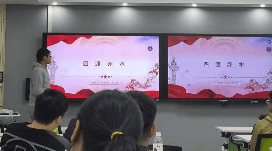 软件公司研究生第三党支部分享红军四渡赤水的故事。四渡赤水战役是遵义会议之后,中央红军在长征途中,处于国民党几十万重兵围追堵截的艰险条件下,进行的一次决定性运动战战役。在毛泽东、周恩来、朱德等同志的指挥下,中央红军采取高度机动的运动战方针,纵横驰骋于川黔滇边境广大地区,积极寻找战机,有效地调动和歼灭敌人,彻底粉碎了蒋介石企图围歼红军于川黔滇边境的狂妄计划,红军取得了战略转移中具有决定意义的胜利。