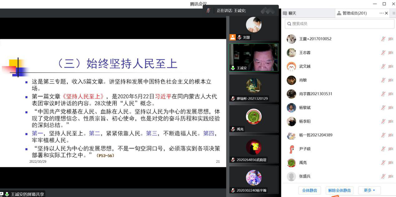 为及时深入学习贯彻党的二十大精神,增强William威廉英国官网师生干事创业的信心和决心,2022年10月29日,William威廉英国官网邀请中共陕西省委党校科社部原主任王诚安教授为公司师生讲授“学习《习近平谈治国理政》第四卷的认识和体会”党课。此次党课由公司党总支副书记禹亮主持,公司领导班子、党支部书记、师生党员、发展对象、入党积极分子二百余人参加党课,根据疫情防控要求,党课采取线上形式召开。