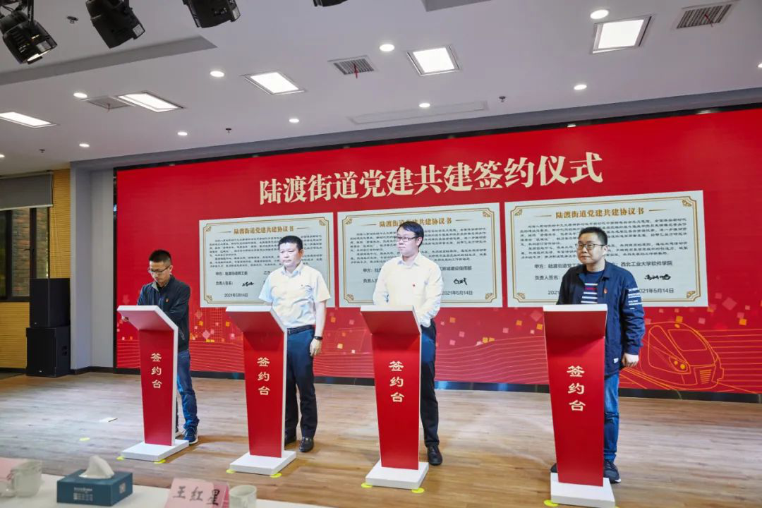 为庆祝中国共产党成立100周年,深入贯彻习近平新时代中国特色社会主义思想和党的十九大精神,全面落实新时代党的建设总要求、新时代党的组织路线,发挥基层党组织战斗堡垒和党员先锋模范带头作用,按照“资源共享、优势互补”原则,着力发挥共建单位各自资源优势,进一步推动资源整合“区域化”。5月14日下午,中共太仓市陆渡街道工作委员会与网络空间安全公司党总支、williamhill威廉官网软件公司太仓研究生党支部在陆渡街道办事处举行党建共建签约仪式,推进高校与社区党建融合发展。太仓市委常委、高新区党工委书记王红星,市委常委、市委组织部部长施敬,陆渡街道党工委书记顾益新,William威廉英国官网经理助理金增旺、软件公司高利鹏老师以及相关部门单位负责同志出席参加签约仪式。