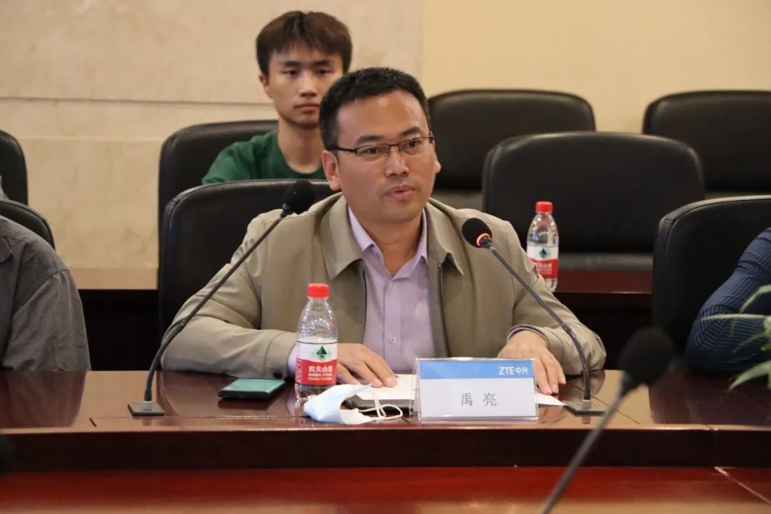 之后由禹亮讲话。禹亮首先对中兴公司的热情接待表示了感谢,随后他强调,中兴作为一家低调务实、奋进开拓的公司,和公司有着相近文化氛围和发展环境,命运共通、性格相投,都在为国家科技创新不懈努力。他希望以此为契机,发挥双方优势,在公司产品、人才培养、就业拓岗等方面不断巩固和强化合作机制。