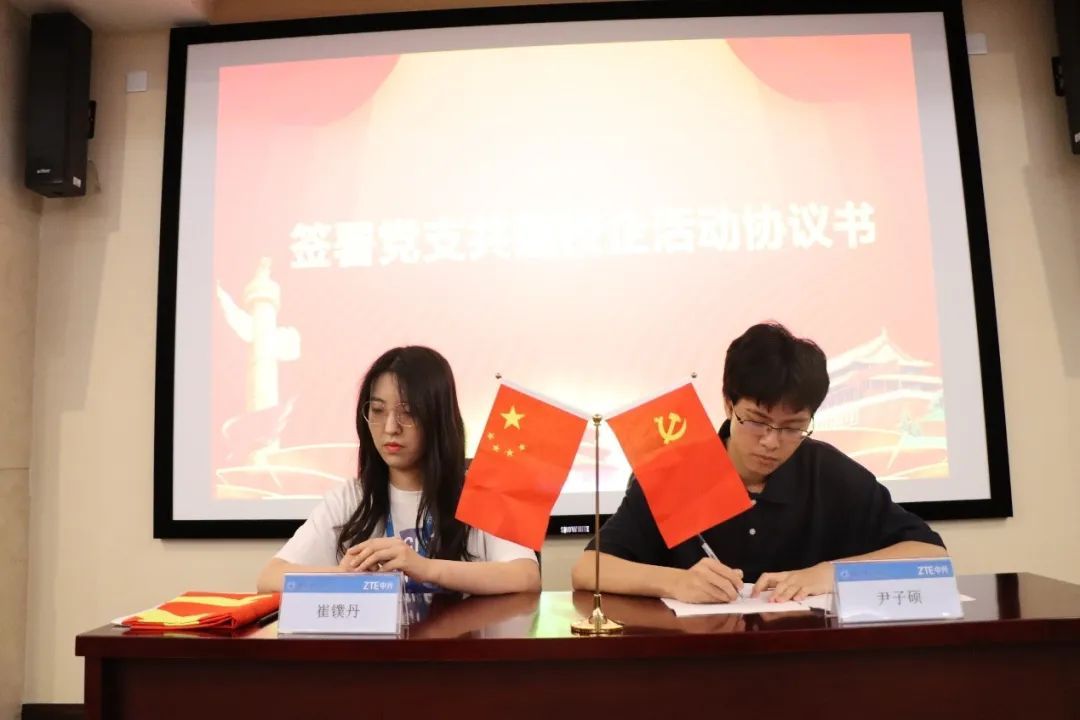 随后,公司员工第七支部与中兴通讯人力资源西安党支部签署了党支部共建校企活动协议书。并由员工第七党支部副书记尹子硕领学习近平著作宣读相关篇章,双方共上了一堂党课。