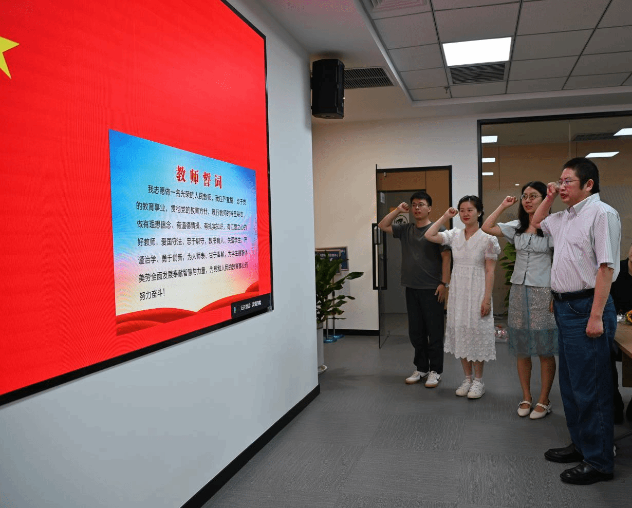 会议首先举行了入职宣誓仪式。由公司常务副经理张盛兵领誓,公司新入职教师面向国旗,举起右手,进行了庄严神圣的入职宣誓。通过宣誓活动,进一步引导新入职教师坚守为党育人、为国育才使命,坚定为员工德智体美劳全面发展奉献智慧与力量,为党和人民的教育事业而努力奋斗的决心。