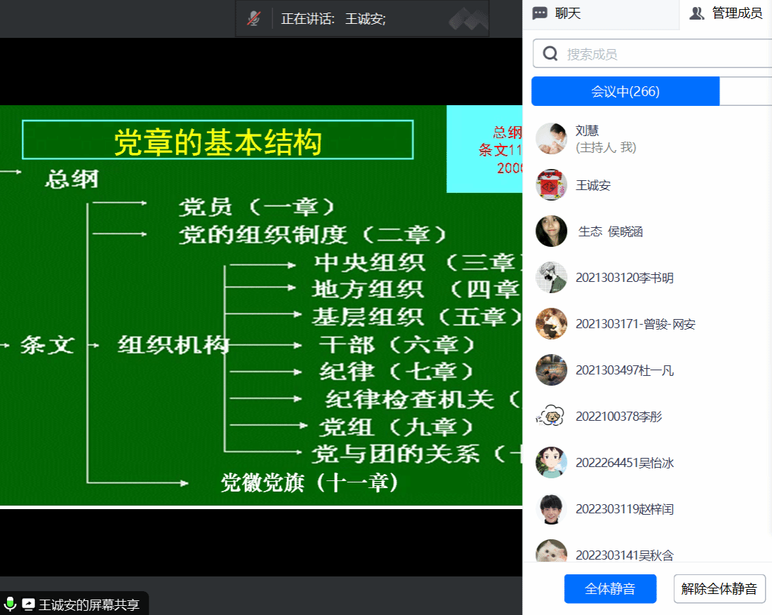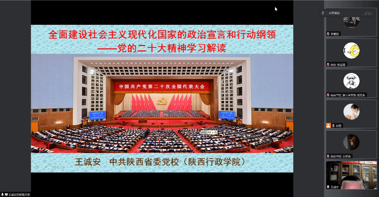 随后,王诚安教授向师生解读了党的二十大通过的《中国共产党章程》的背景意义和重要性,讲解了重点内容。